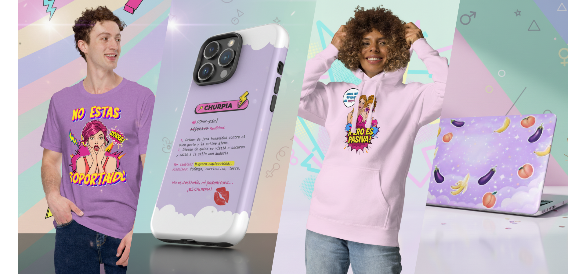 Aquí se sube, se pasea y se compra lo que tu mood merece. Humor, fruta y actitud en cada prenda y accesorio. Pasa, mira y soporta esta colección.